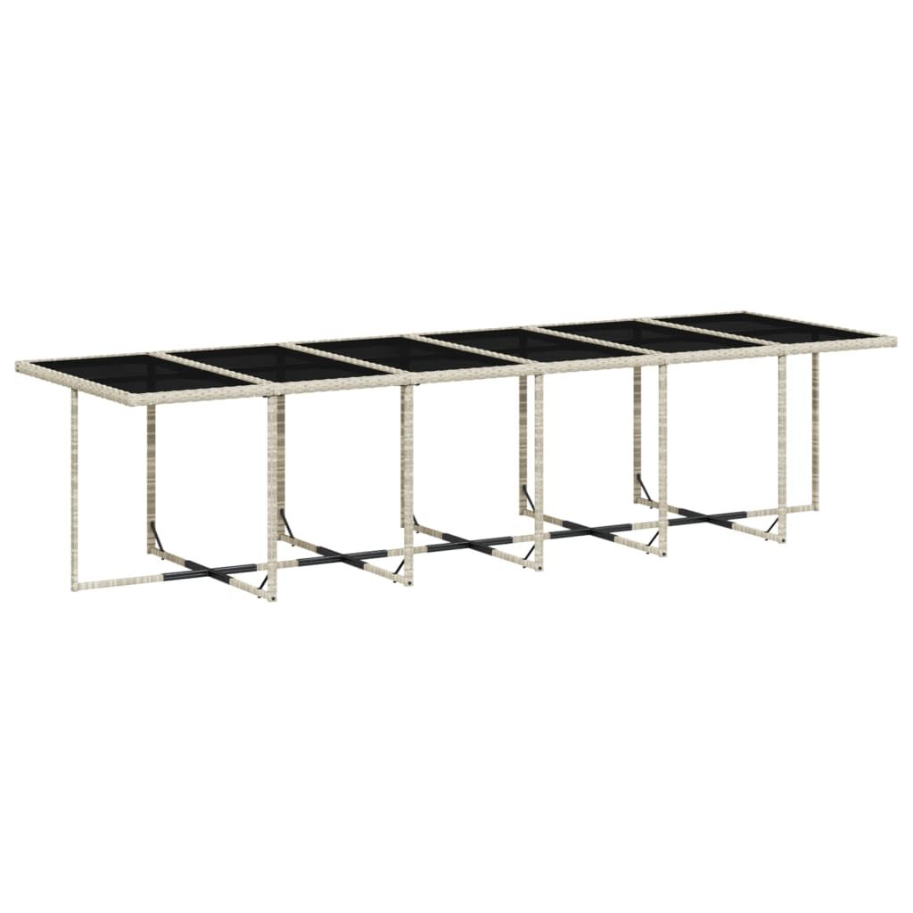 This garden dining set is a great choice for al fresco dining or just relaxing in the garden, backyard, or on the patio. Durable material: PE rattan, also known as poly rattan, is a strong, low-maintenance synthetic material that looks like natural rattan. It's lightweight, easy to clean, and commonly used for outdoor furniture due to its durability and weather-resistant properties.Compact storage: These chairs have a flap backrest that can be folded down, making it easy to store them under the table. When folded, they neatly fit under the table, forming a space-saving cube shape.Comfortable seat experience: This outdoor furniture, complete with thickly padded cushions, offers a comfortable seating experience.Removable and washable cover: These seat cushions feature removable covers for easy washing and maintenance. The cushion covers have a flap at the back for easy attachment to the backrests.Glass tabletop: The outdoor table's top is made from strong and durable tempered glass, making it easy to clean with a damp cloth and adding a touch of elegance to your outdoor space. Good to know:To make sure your outdoor furniture stays beautiful, we recommend protecting it with a waterproof cover.