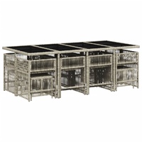 This garden dining set is a great choice for al fresco dining or just relaxing in the garden, backyard, or patio. Durable material: PE rattan, also known as poly rattan, is a strong, low-maintenance synthetic material that looks like natural rattan. It's lightweight, easy to clean, and commonly used for outdoor furniture due to its durability and weather-resistant properties.Compact storage: These chairs have a flap backrest that can be folded down, making it easy to store them under the table. When folded, they neatly fit under the table, forming a space-saving cube shape.Comfortable seat experience: This outdoor furniture, complete with thickly padded cushions, offers a comfortable seating experience.Removable and washable cover: These seat cushions feature removable covers for easy washing and maintenance. The cushion covers have a flap at the back for easy attachment to the backrests.Glass tabletop: The outdoor table's top is made from strong and durable tempered glass, making it easy to clean with a damp cloth and adding a touch of elegance to your outdoor space. Good to know:To make sure your outdoor furniture stays beautiful, we recommend protecting it with a waterproof cover.