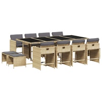 This garden dining set is a great choice for al fresco dining or just relaxing in the garden, backyard, or on the patio. Durable material: PE rattan, also known as poly rattan, is a strong, low-maintenance synthetic material that looks like natural rattan. It's lightweight, easy to clean, and commonly used for outdoor furniture due to its durability and weather-resistant properties.Compact storage: These chairs have a flap backrest that can be folded down, making it easy to store them under the table. When folded, they neatly fit under the table, forming a space-saving cube shape. Additionally, the stools can also be stored under the chairs, further maximizing space efficiency.Comfortable seat experience: This outdoor furniture, complete with thickly padded cushions, offers a comfortable seating experience.Removable and washable cover: These seat cushions feature removable covers for easy washing and maintenance. The chair cushion covers have a flap at the back for easy attachment to the chairs.Stable and easy-to-clean tabletop: This garden table has a tempered glass table top that is sturdy, durable, and easy to clean with a damp cloth. Good to know: To make sure your outdoor furniture stays beautiful, we recommend protecting it with a waterproof cover.