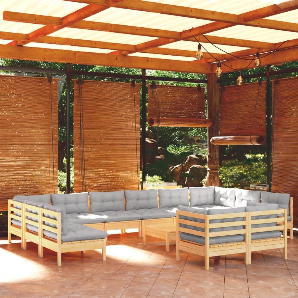 $1,107.31This wooden garden lounge set is an excellent choice for relaxing and enjoying the weather, taking a nap, or chatting with your family or friends. The patio lounge set is made of solid pinewood, making it sturdy and stable. The cushions add extra comfort. You can combine it with other modular segments to create your own personal garden lounge set configurations! Note: In order to extend the life of your outdoor furniture, we recommend you to clean it regularly and do not leave it outdoors without protection unnecessarily.Clean: Use a mild soap solutionStoring: If possible, store in a cool, dry place indoors. If the product is stored outdoors, protect it with a waterproof cover. Wipe and dry the excess water or snow from flat surfaces after a rain or snowfall. Allow sufficient air circulation to avoid moisture-related damage.