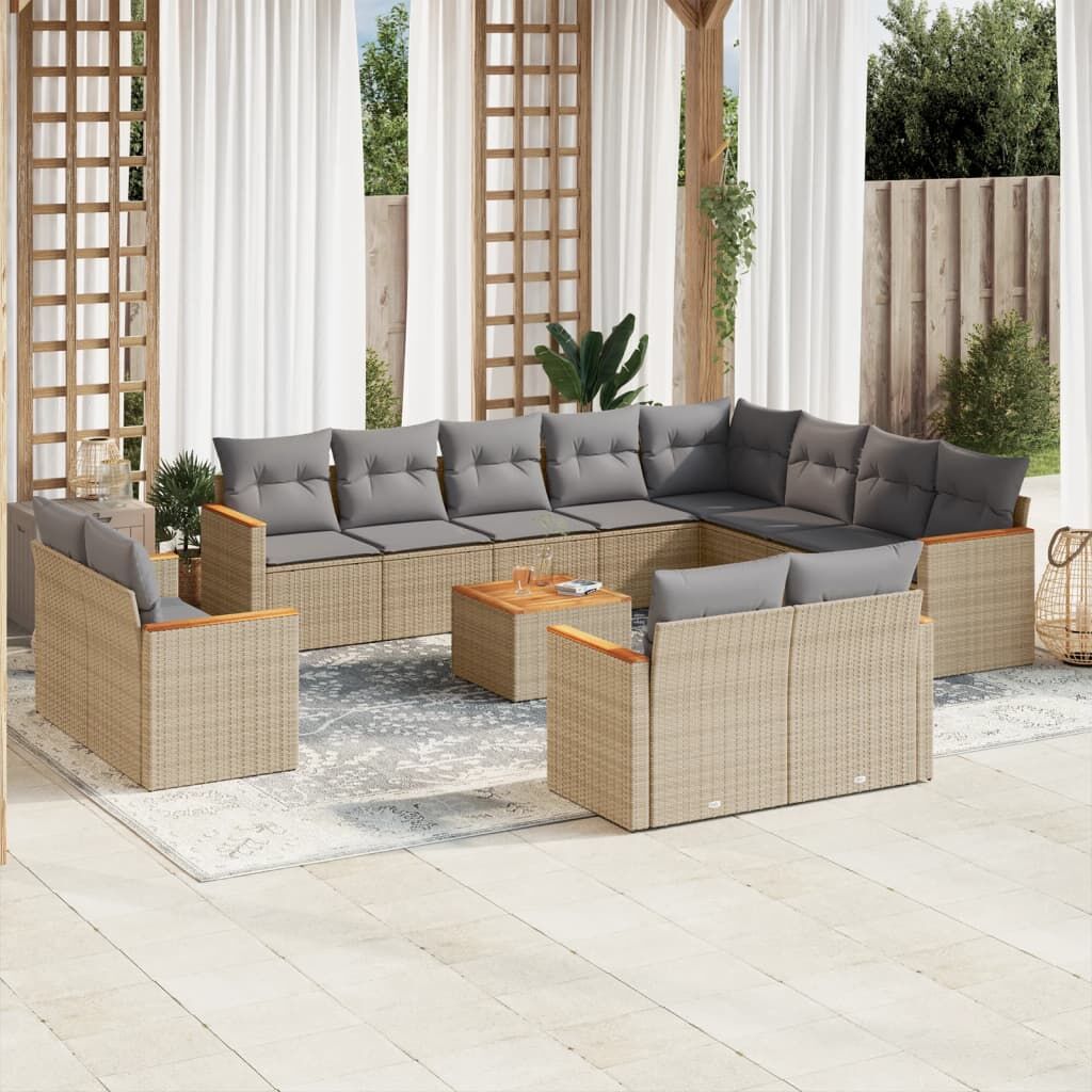 13 Piece Garden Sofa Set with Cushions Beige Poly Rattan