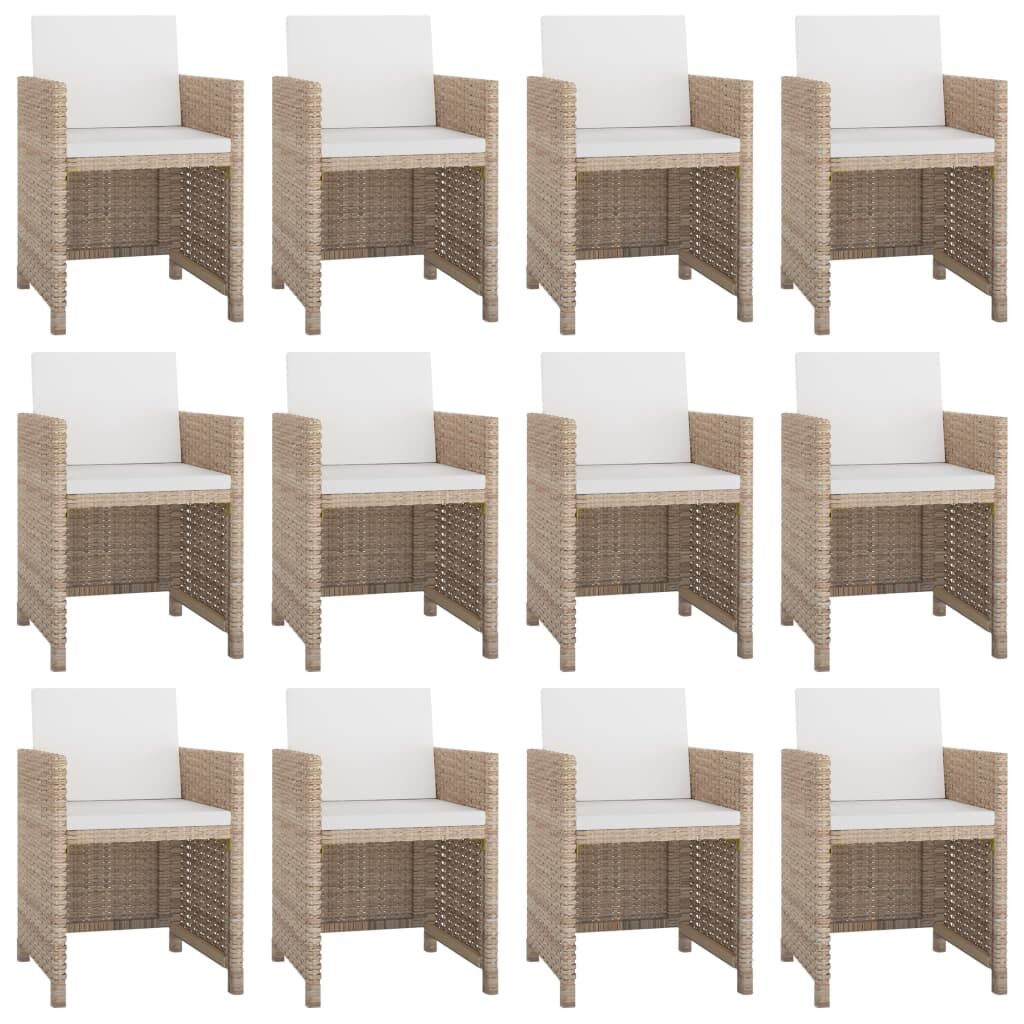 Our stylish rattan garden furniture set will become the focal point of your garden or patio! This rattan dining set, with an elegant design, will be a great choice for al fresco dining or relaxing in the garden. Made of weather-resistant and waterproof PE rattan, the dining set is easy to clean, hard-wearing and suitable for daily use. The powder-coated steel frames make the table and chairs strong and sturdy. Thanks to their lightweight constructions, all items are easy to move. The glass tabletop is easy to clean with a damp cloth. The thick, soft, foam-filled seat and back cushions are highly comfortable and made of water-repellent polyester. The cushion covers with zips can be easily removed and washed. Delivery includes 1 table, 12 chairs and 24 cushions. Note: We recommend covering the set in the rain, snow and frost.