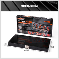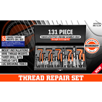 The kit has altogether 131 pieces, all made according to professional standard. It has one HSS tap for each size, one HSS drill for each size, 2 insert tools for each size, thread inserts for each size, all come complete in a handy storage case.