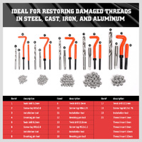 This thread repair kit is used to repair or replace damaged or stripped internal screw threads.