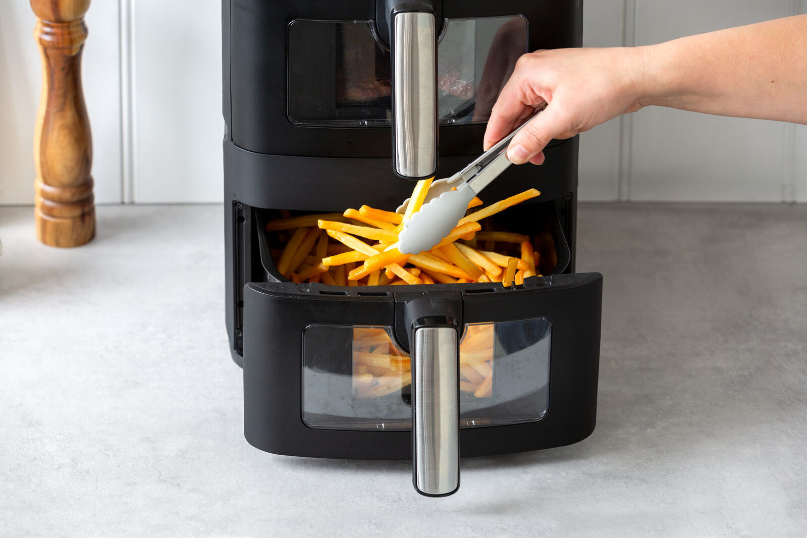 Cook smarter and faster with the Healthy Choice 13L Dual Zone Vertical Air Fryer. Featuring powerful 2300W performance and dual-zone cooking, it lets you prepare two different dishes at once for ultimate convenience. The space-saving vertical design with a foldable top display maximises bench space, while the generous 13L capacity is perfect for family meals. Enjoy healthier, crispy results with little to no oil — ideal for everyday cooking made easy.