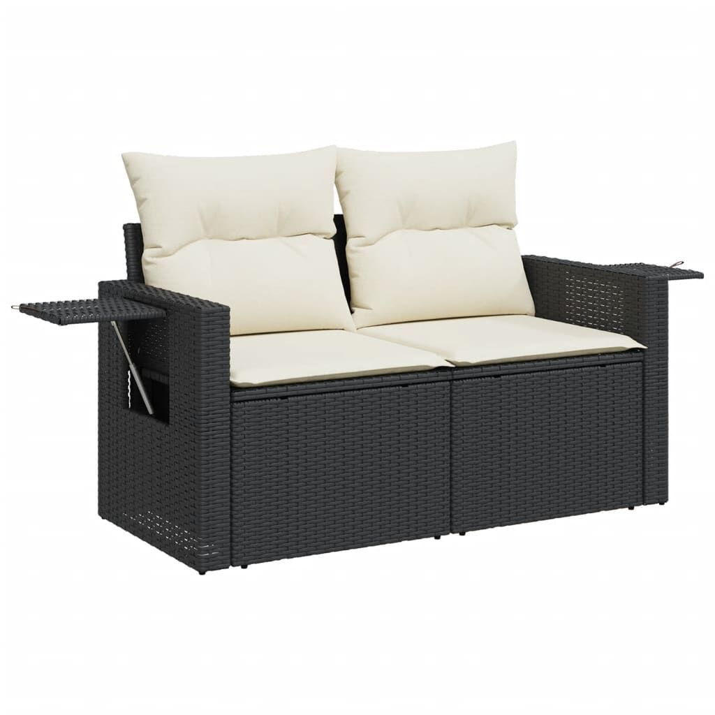 This garden sofa set is the perfect addition to your backyard, terrace, or patio, providing a comfortable and inviting space for chatting with family and friends or simply relaxing and enjoying the outdoors. Durable material: PE rattan, also known as poly rattan, is a strong, low-maintenance synthetic material that looks like natural rattan. It's lightweight, easy to clean, and commonly used for outdoor furniture due to its durability and weather-resistant properties.Convenient side table: This outdoor furniture features a foldable side table with a gas spring on the armrests, providing a convenient spot to keep your essentials within easy reach.Stable and easy-to-clean tabletop: This garden table has an acacia wood top that is sturdy, durable, and easy to clean with a damp cloth.Removable and washable cover: These seat cushions feature removable covers for easy washing and maintenance.Modular design: This outdoor furniture set has a modular design, making it completely flexible and easy to move around, so you can create a customised outdoor furniture arrangement. Good to know:To make sure your outdoor furniture stays beautiful, we recommend protecting it with a waterproof cover.