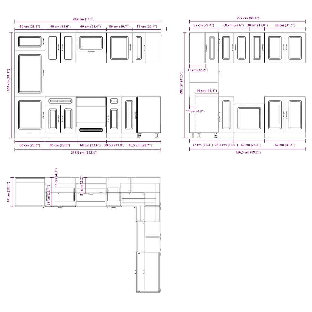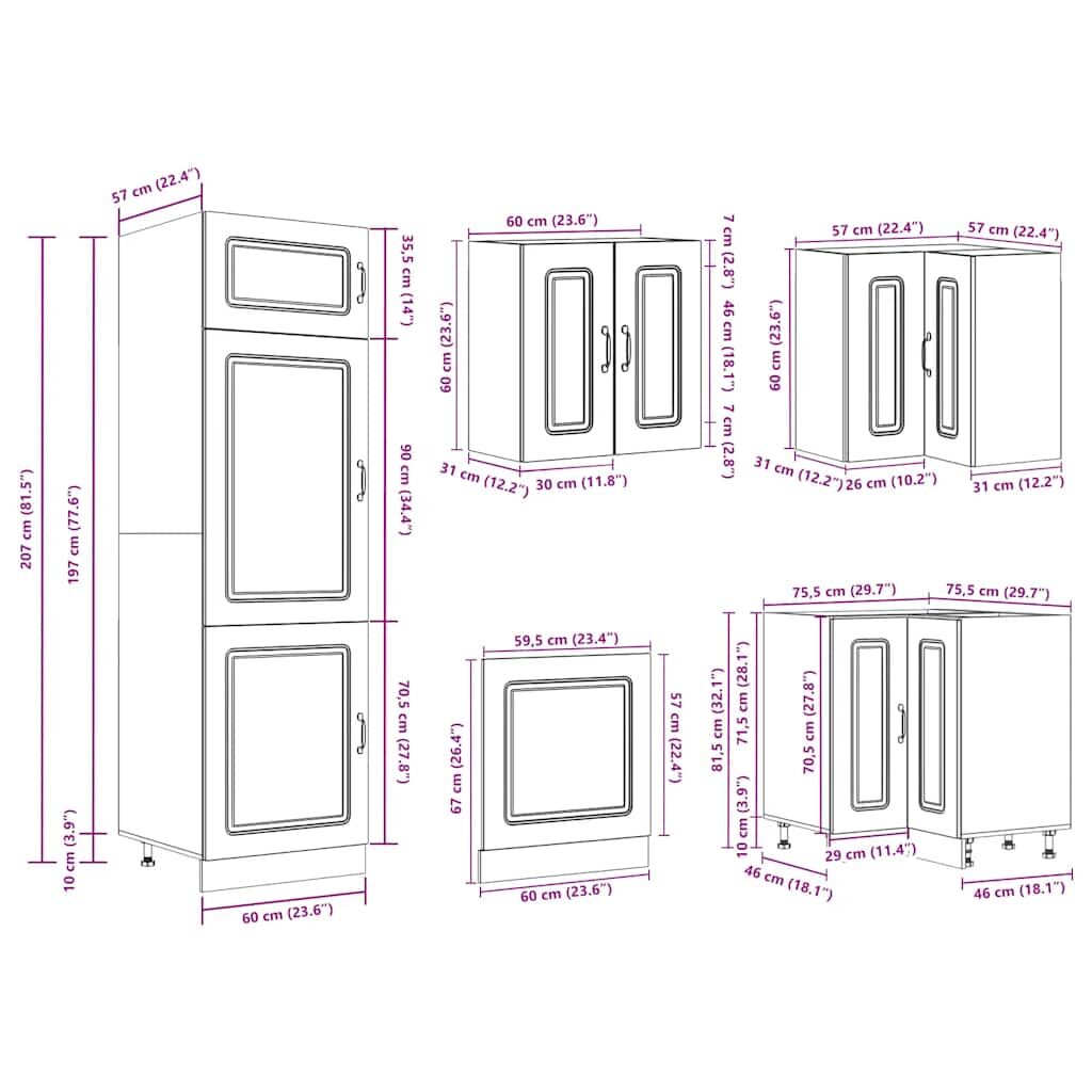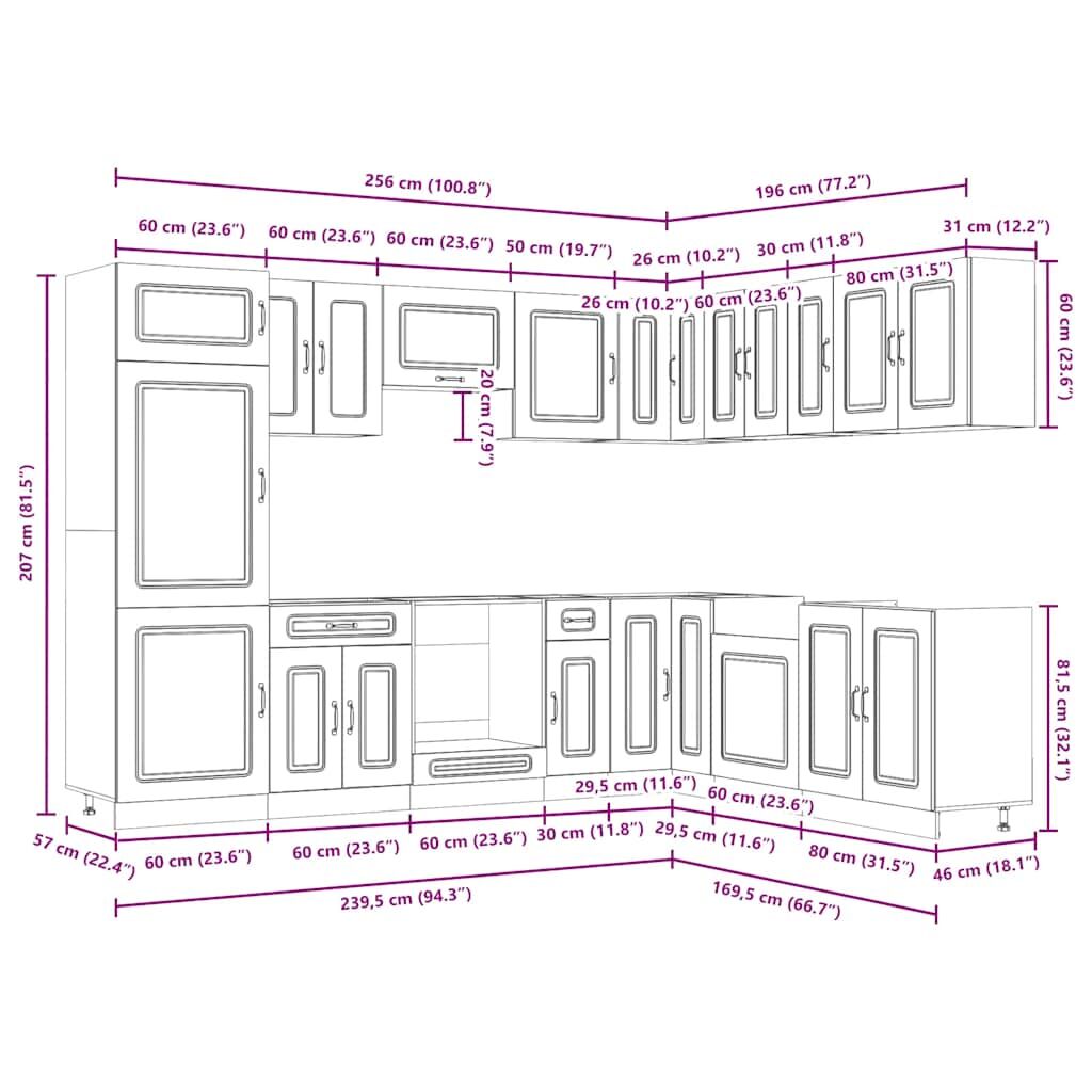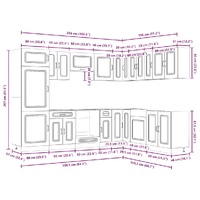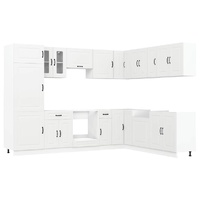 This 14-piece kitchen cabinet set, with its elegant design, optimises your kitchen space and provides ample storage space for your personal belongings! Stable and durable material: Engineered wood is a durable and stable material with a smooth surface that is resistant to moisture, warping, and splitting, making it a reliable choice for a variety of projects.Ample storage space: The kitchen cabinet set has many compartments, and offers sufficient space to store bowls, plates, pots, and other kitchen appliances.Adjustable feet: The bottom cabinets feature adjustable feet that can be adjusted in height to suit your kitchen layout.Easy to maintain: Thanks to its smooth surface, these kitchen cabinets are easy to clean with a damp cloth and require less maintenance. Warning:To prevent it from tipping over, this product must be used with the provided wall attachment device. Good to know:Screw(s) and plug(s) for inside the wall are not included. Seek and use screw(s) and plug(s) suitable for your walls. If you are uncertain, seek professional advice. Read and follow each step of the instruction carefully.The worktop, sink and faucet are not included in the delivery.