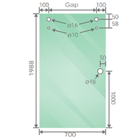 Tailored for a frameless shower screen featuring a sliding door, our product showcases 10mm clear toughened glass with 2mm radius corners and polished edges. All measurements are in millimeters, and the panels come pre-drilled to seamlessly fit various styles of shower hardware. They are adjustable to suit widths ranging from 1350mm to 1440mm.