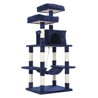 Meow there! Are you tired of cluttering your home with cat toys and furniture Are you on the hunt for the purrfect cat playground for your furry friends Look no further than the Paw Mat cat tree!Our cat tree offers a multi-level, sturdy construction with various features that will keep your frisky cats entertained for hours. From climbing to leaping, scratching to hunting, and playing to resting, our cat tree has everything your cat needs in one place.To satisfy your cat's natural instincts and keep your furniture intact, our cat tree comes with durable sisal-wrapped posts to heal your cat's scratching urge and fluffy pom-poms to acquire their thrill of hunting.Unlike other cat trees that may have hard surfaces that make it uncomfortable for cats to grip and relax, our cat tree has a soft and plush surface around the cat cube, top perch, and hammock. Your cats can easily dig their claws in and climb up without slipping. They can also find multiple cozy spots to lounge and snooze.Our cat tree is not only functional but also aesthetically pleasing, blending in with any home decor. It's also a great addition to cat cafes, providing a stimulating environment for your feline customers while adding to the ambiance of the space.Invest in our cat tree and give your cat the ultimate feline paradise they deserve. Don't settle for anything less than the best.