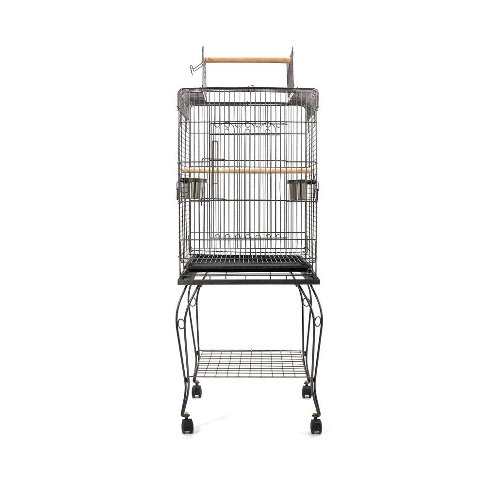 This Parrot Cage with an opening dome roof is the most comfortable roost for your bird. The cage is made of sturdy and high-quality metal. It is tough and durable. The dimension of this cage is about 51x 51x 73 cm, which is perfect for small to medium size birds as well as parrots. The cage comes with a large access door, 2 small windows for the stainless steel food and water trays, 2 timber perches and a removable tray. There are 4 castor wheels equipped on the elegant-curved stand which provides great mobility. There is also a wire shelf below the cage for extra storage.