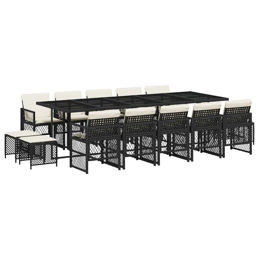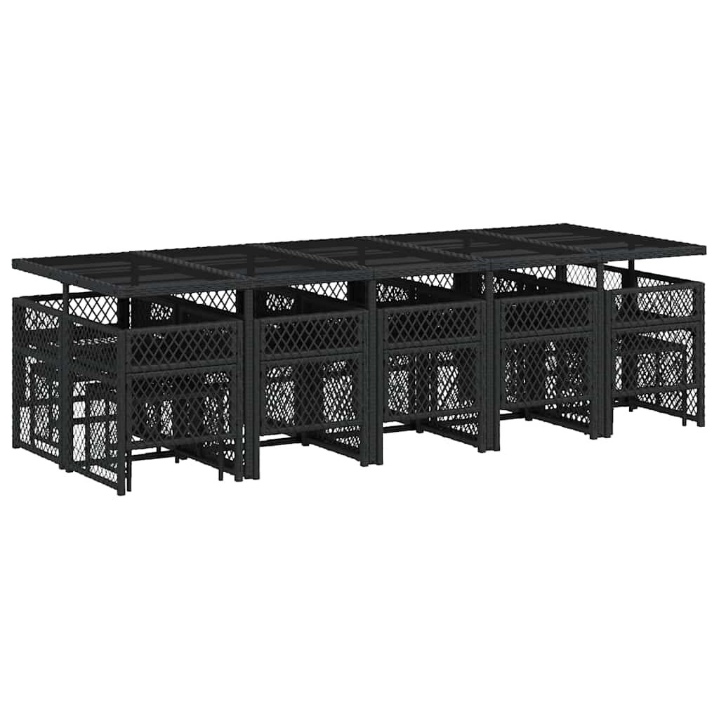 This garden dining set is a great choice for al fresco dining or just relaxing in the garden, backyard, or patio. Durable material: PE rattan, also known as poly rattan, is a strong, low-maintenance synthetic material that looks like natural rattan. It's lightweight, easy to clean, and commonly used for outdoor furniture due to its durability and weather-resistant properties. Glass tabletop: The outdoor table's top is made from strong and durable tempered glass, making it easy to clean with a damp cloth and adding a touch of elegance to your outdoor space. Compact storage: These chairs have a flap backrest that can be folded down, making it easy to store them under the table. When folded, they neatly fit under the table, forming a space-saving cube shape. Additionally, the stools can also be stored under the chairs, further maximising space efficiency. Comfortable seat experience: This outdoor furniture, complete with thickly padded cushions, offers a comfortable seating experience. Removable and washable cover: These seat cushions feature removable covers for easy washing and maintenance. The chair cushion covers have a flap at the back for easy attachment to the chairs. Good to know:To make sure your outdoor furniture stays beautiful, we recommend protecting it with a waterproof cover.