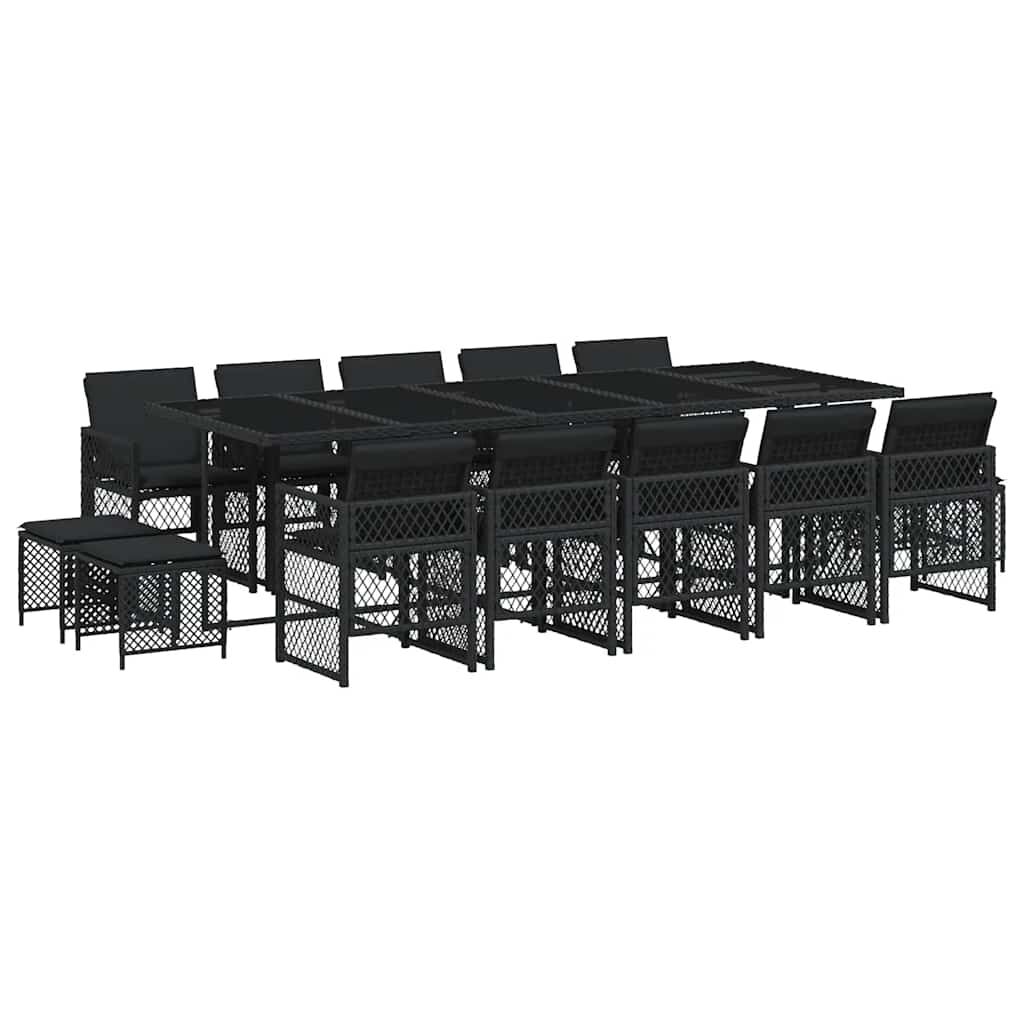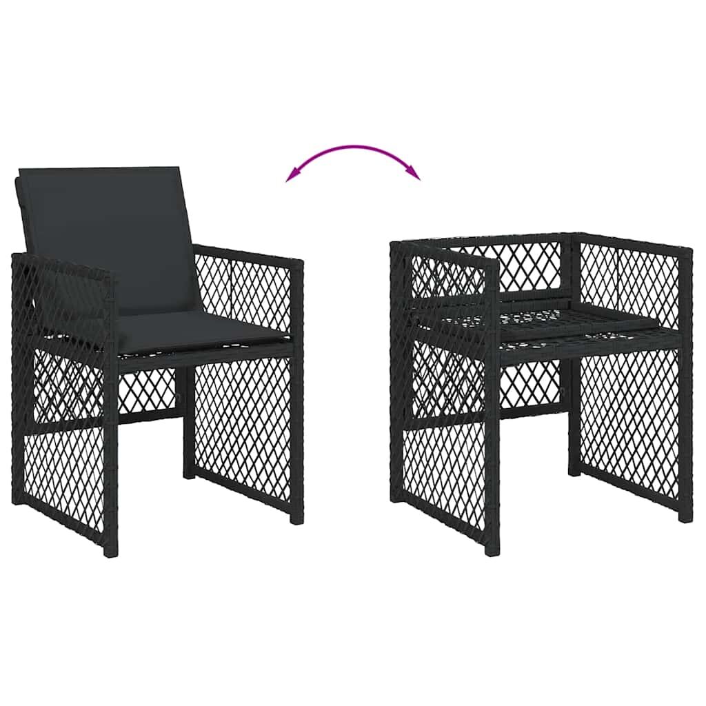 This garden dining set is a great choice for al fresco dining or just relaxing in the garden, backyard, or patio. Durable material: PE rattan, also known as poly rattan, is a strong, low-maintenance synthetic material that looks like natural rattan. It's lightweight, easy to clean, and commonly used for outdoor furniture due to its durability and weather-resistant properties. Glass tabletop: The outdoor table's top is made from strong and durable tempered glass, making it easy to clean with a damp cloth and adding a touch of elegance to your outdoor space. Compact storage: These chairs have a flap backrest that can be folded down, making it easy to store them under the table. When folded, they neatly fit under the table, forming a space-saving cube shape. Additionally, the stools can also be stored under the chairs, further maximising space efficiency. Comfortable seat experience: This outdoor furniture, complete with thickly padded cushions, offers a comfortable seating experience. Removable and washable cover: These seat cushions feature removable covers for easy washing and maintenance. The chair cushion covers have a flap at the back for easy attachment to the chairs. Good to know:To make sure your outdoor furniture stays beautiful, we recommend protecting it with a waterproof cover.
