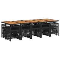 This garden dining set is a great choice for al fresco dining or just relaxing in the garden, backyard, or on the patio. Durable material: PE rattan, also known as poly rattan, is a strong, low-maintenance synthetic material that looks like natural rattan. It's lightweight, easy to clean, and commonly used for outdoor furniture due to its durability and weather-resistant properties.Compact storage: These chairs have a flap backrest that can be folded down, making it easy to store them under the table. When folded, they neatly fit under the table, forming a space-saving cube shape. Additionally, the stools can also be stored under the chairs, further maximizing space efficiency.Comfortable seat experience: This outdoor furniture, complete with thickly padded cushions, offers a comfortable seating experience.Removable and washable cover: These cushions feature removable covers for easy washing and maintenance. The cushion covers have a flap at the back for easy attachment to the backrests.Stable and easy-to-clean tabletop: This garden table has an acacia wood top that is sturdy, durable, and easy to clean with a damp cloth. Good to know: To make sure your outdoor furniture stays beautiful, we recommend protecting it with a waterproof cover.