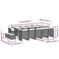This garden dining set is a great choice for al fresco dining or just relaxing in the garden, backyard, or on the patio. Durable material: PE rattan, also known as poly rattan, is a strong, low-maintenance synthetic material that looks like natural rattan. It's lightweight, easy to clean, and commonly used for outdoor furniture due to its durability and weather-resistant properties.Compact storage: These chairs have a flap backrest that can be folded down, making it easy to store them under the table. When folded, they neatly fit under the table, forming a space-saving cube shape. Additionally, the stools can also be stored under the chairs, further maximising space efficiency. Comfortable seat experience: This outdoor furniture, complete with thickly padded cushions, offers a comfortable seating experience.Removable and washable cover: These seat cushions feature removable covers for easy washing and maintenance.Stable and easy-to-clean tabletop: This garden table has an acacia wood top that is sturdy, durable, and easy to clean with a damp cloth. Good to know: To make sure your outdoor furniture stays beautiful, we recommend protecting it with a waterproof cover.