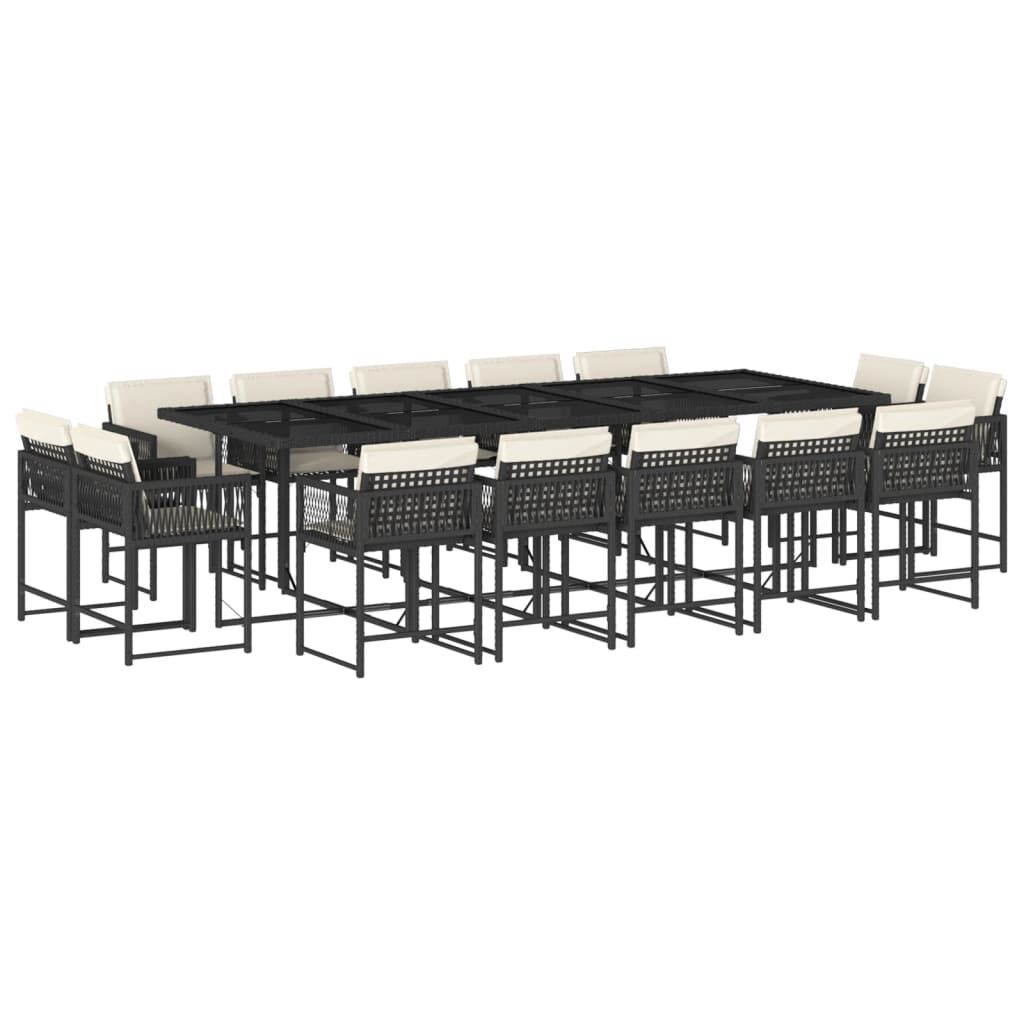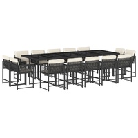 This garden dining set is a great choice for al fresco dining or just relaxing in the garden, backyard, or on the patio. Durable material: PE rattan, also known as poly rattan, is a strong, low-maintenance synthetic material that looks like natural rattan. It's lightweight, easy to clean, and commonly used for outdoor furniture due to its durability and weather-resistant properties.Compact storage: These chairs have a flap backrest that can be folded down, making it easy to store them under the table. When folded, they neatly fit under the table, forming a space-saving cube shape.Comfortable seat experience: This outdoor furniture, complete with thickly padded cushions, offers a comfortable seating experience.Removable and washable cover: These seat cushions feature removable covers for easy washing and maintenance. The cushion covers have a flap at the back for easy attachment to the backrests.Glass tabletop: The outdoor table's top is made from strong and durable tempered glass, making it easy to clean with a damp cloth and adding a touch of elegance to your outdoor space. Good to know:To make sure your outdoor furniture stays beautiful, we recommend protecting it with a waterproof cover.