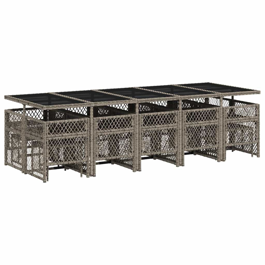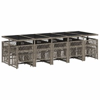 This garden dining set is a great choice for al fresco dining or just relaxing in the garden, backyard, or patio. Durable material: PE rattan, also known as poly rattan, is a strong, low-maintenance synthetic material that looks like natural rattan. It's lightweight, easy to clean, and commonly used for outdoor furniture due to its durability and weather-resistant properties. Glass tabletop: The outdoor table's top is made from strong and durable tempered glass, making it easy to clean with a damp cloth and adding a touch of elegance to your outdoor space. Compact storage: These chairs have a flap backrest that can be folded down, making it easy to store them under the table. When folded, they neatly fit under the table, forming a space-saving cube shape. Additionally, the stools can also be stored under the chairs, further maximising space efficiency. Comfortable seat experience: This outdoor furniture, complete with thickly padded cushions, offers a comfortable seating experience. Removable and washable cover: These seat cushions feature removable covers for easy washing and maintenance. The chair cushion covers have a flap at the back for easy attachment to the chairs. Good to know:To make sure your outdoor furniture stays beautiful, we recommend protecting it with a waterproof cover.