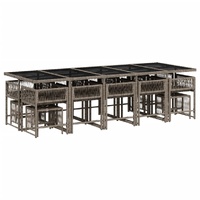This garden dining set is a great choice for al fresco dining or just relaxing in the garden, backyard, or on the patio. Durable material: PE rattan, also known as poly rattan, is a strong, low-maintenance synthetic material that looks like natural rattan. It's lightweight, easy to clean, and commonly used for outdoor furniture due to its durability and weather-resistant properties.Compact storage: These chairs have a flap backrest that can be folded down, making it easy to store them under the table. When folded, they neatly fit under the table, forming a space-saving cube shape. Additionally, the stools can also be stored under the chairs, further maximizing space efficiency.Comfortable seat experience: This outdoor furniture, complete with thickly padded cushions, offers a comfortable seating experience.Removable and washable cover: These seat cushions feature removable covers for easy washing and maintenance. The cushion covers have a flap at the back for easy attachment to the backrests.Glass tabletop: The outdoor table's top is made from strong and durable tempered glass, making it easy to clean with a damp cloth and adding a touch of elegance to your outdoor space. Good to know:To make sure your outdoor furniture stays beautiful, we recommend protecting it with a waterproof cover.