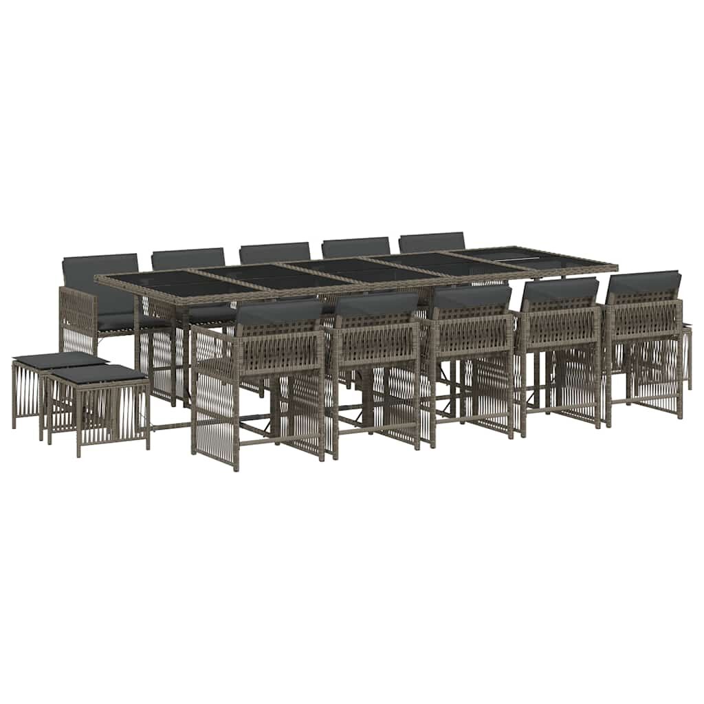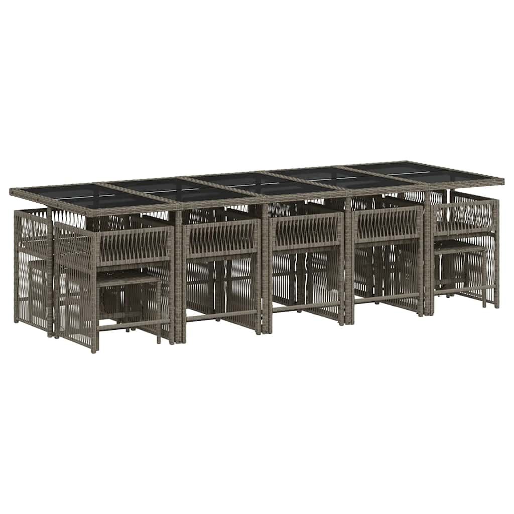 This garden dining set is a great choice for al fresco dining or just relaxing in the garden, backyard, or patio. Durable material: PE rattan, also known as poly rattan, is a strong, low-maintenance synthetic material that looks like natural rattan. It's lightweight, easy to clean, and commonly used for outdoor furniture due to its durability and weather-resistant properties.Compact storage: These chairs have a flap backrest that can be folded down, making it easy to store them under the table. When folded, they neatly fit under the table, forming a space-saving cube shape.Comfortable seat experience: This outdoor furniture, complete with thickly padded cushions, offers a comfortable seating experience.Removable and washable cover: These seat cushions feature removable covers for easy washing and maintenance. The cushion covers have a flap at the back for easy attachment to the backrests.Glass tabletop: The outdoor table's top is made from strong and durable tempered glass, making it easy to clean with a damp cloth and adding a touch of elegance to your outdoor space. Good to know:To make sure your outdoor furniture stays beautiful, we recommend protecting it with a waterproof cover.