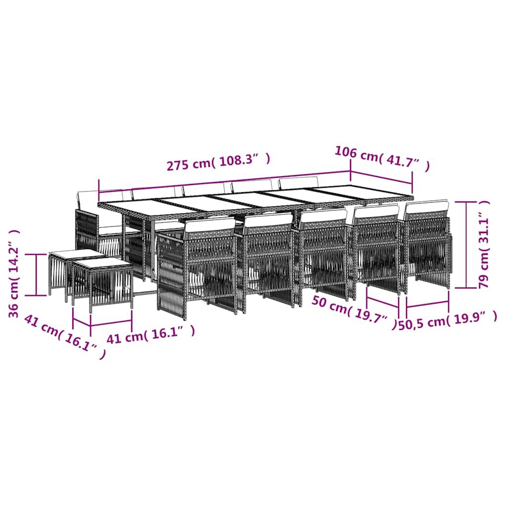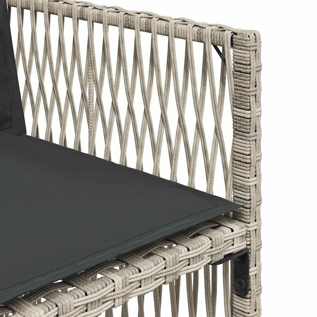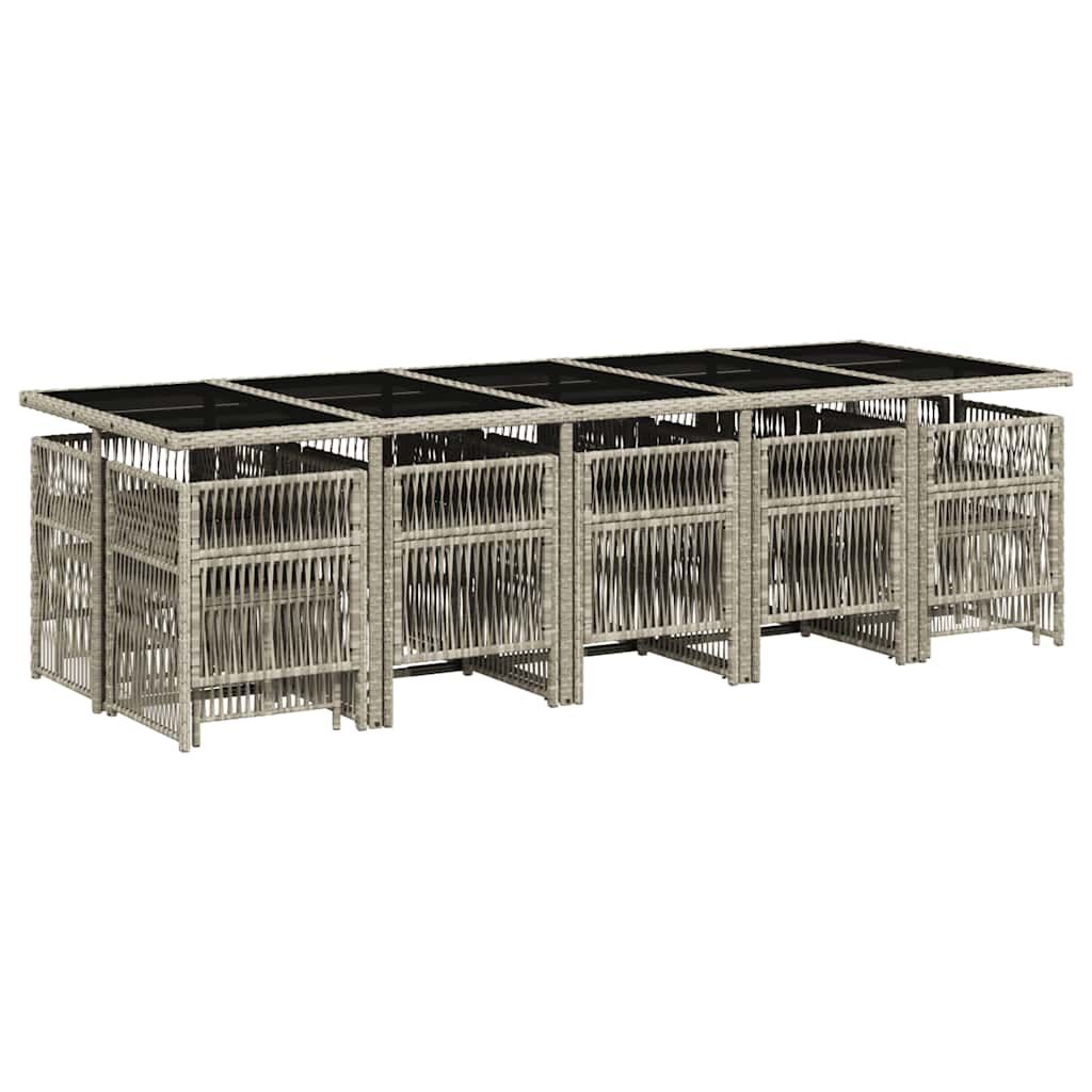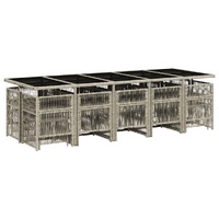 This garden dining set is a great choice for al fresco dining or just relaxing in the garden, backyard, or on the patio. Durable material: PE rattan, also known as poly rattan, is a strong, low-maintenance synthetic material that looks like natural rattan. It's lightweight, easy to clean, and commonly used for outdoor furniture due to its durability and weather-resistant properties.Compact storage: These chairs have a flap backrest that can be folded down, making it easy to store them under the table. When folded, they neatly fit under the table, forming a space-saving cube shape. Additionally, the stools can also be stored under the chairs, further maximizing space efficiency.Comfortable seat experience: This outdoor furniture, complete with thickly padded cushions, offers a comfortable seating experience.Removable and washable cover: These cushions feature removable covers for easy washing and maintenance. The cushion covers have a flap at the back for easy attachment to the backrests.Glass tabletop: The outdoor table's top is made from strong and durable tempered glass, making it easy to clean with a damp cloth and adding a touch of elegance to your outdoor space. Good to know: To make sure your outdoor furniture stays beautiful, we recommend protecting it with a waterproof cover.