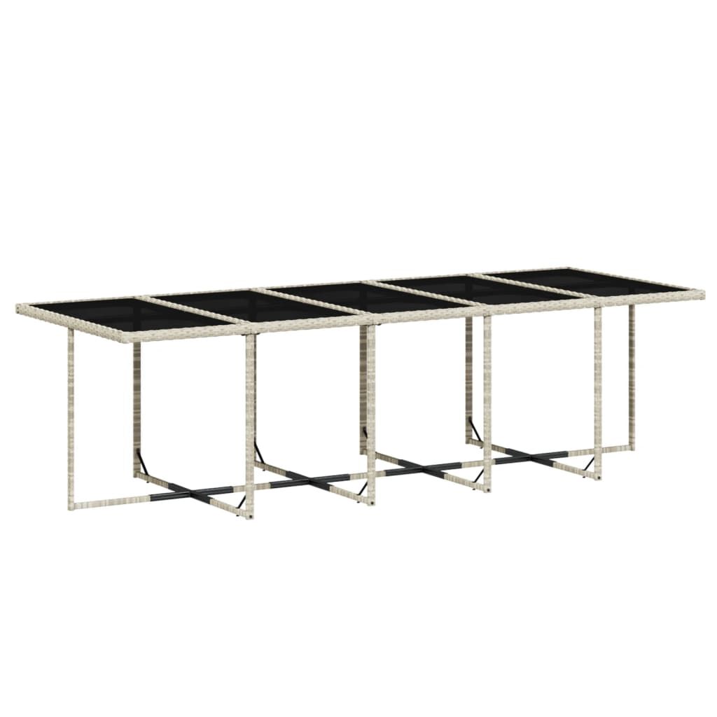 This garden dining set is a great choice for al fresco dining or just relaxing in the garden, backyard, or patio. Durable material: PE rattan, also known as poly rattan, is a strong, low-maintenance synthetic material that looks like natural rattan. It's lightweight, easy to clean, and commonly used for outdoor furniture due to its durability and weather-resistant properties.Compact storage: These chairs have a flap backrest that can be folded down, making it easy to store them under the table. When folded, they neatly fit under the table, forming a space-saving cube shape.Comfortable seat experience: This outdoor furniture, complete with thickly padded cushions, offers a comfortable seating experience.Removable and washable cover: These seat cushions feature removable covers for easy washing and maintenance. The cushion covers have a flap at the back for easy attachment to the backrests.Glass tabletop: The outdoor table's top is made from strong and durable tempered glass, making it easy to clean with a damp cloth and adding a touch of elegance to your outdoor space. Good to know:To make sure your outdoor furniture stays beautiful, we recommend protecting it with a waterproof cover.
