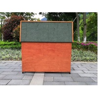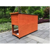 Double storey guinea pig / rabbit hutch hutch with ramp bedroom on legs, off the ground design. 4 x large access door on both level with a lift up asphalt roof for maximum rain and heat protection.