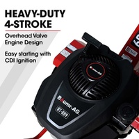 A premium overhead valve 150cc Euro-V standard motor does the hard yards at up to 3000 RPM. It provides easy starting, high torque and reliability you need to make light work of even the toughest jobs!