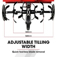 With 6 sets of high tensile steel tines and the options to switch between 360mm and 560mm widths, you'll only need one pass to finely mill your soil for better preparation and growth.