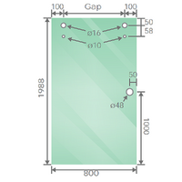 Tailored for a frameless shower screen featuring a sliding door, glass screen for the side panel showcases 10mm clear toughened glass with 2mm radius corners and polished edges. All measurements are in millimeters, and the panels come pre-drilled to seamlessly fit various styles of shower hardware.
