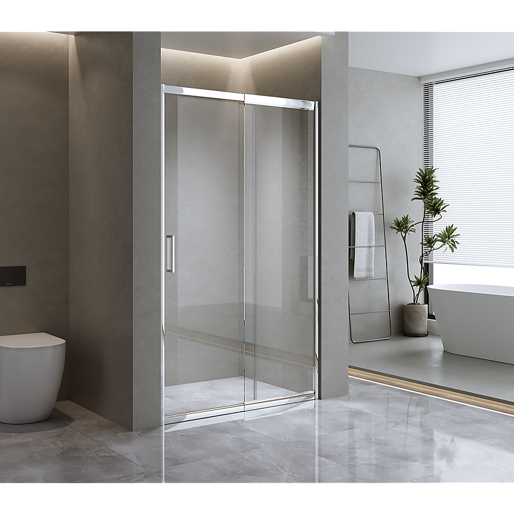 Lift the style of your bathroom with the classy Wall to Wall Sliding Shower Door, bringing in a touch of designer elegance.