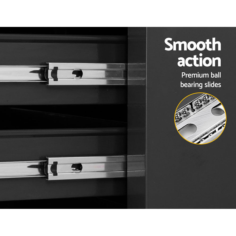 $290.45This robust, multi-drawer Giantz Tool Trolley is an essential for any workshop. Crafted from durable steel, it features smooth ball-bearing slides for easy access and a secure lock system for safety. Its spacious design includes varying drawer sizes to accommodate tools of all shapes, complete with non-slip liners. The chest is also mounted on omni-directional castors with locakble front wheels, ensuring a smooth maneuverability and stable positioning. Sleek and functional, it's perfect for organizing and protecting your valuable tools.