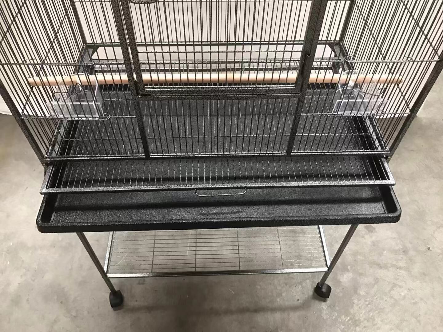 Our goodquality wrought iron birdcage features perches, feeders and ample room for your bird to spread their wings.