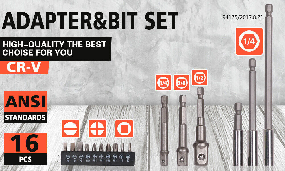 16Pc Socket Bit Adaptor Set Power Drill Nut Driver Extension Screwdriver Bits