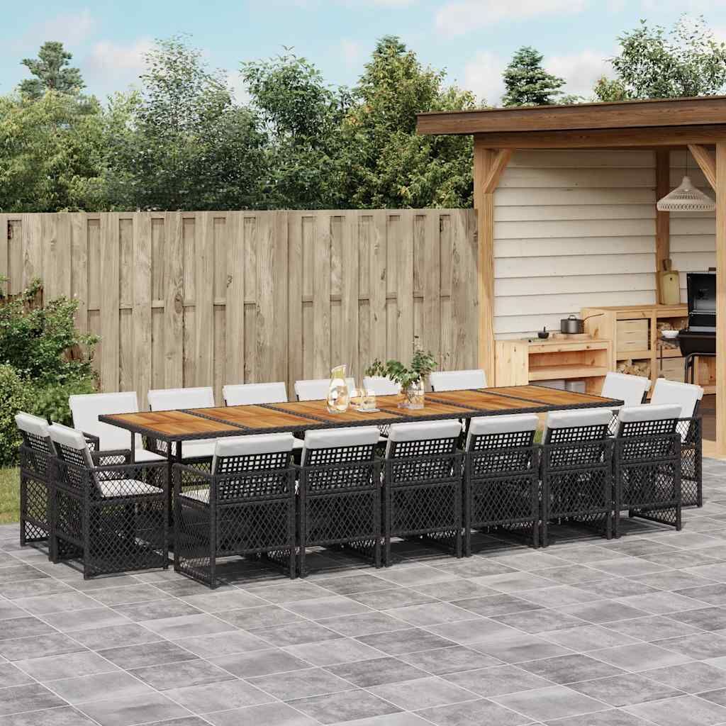 This garden dining set is a great choice for al fresco dining or just relaxing in the garden, backyard, or on the patio. Durable material: PE rattan, also known as poly rattan, is a strong, low-maintenance synthetic material that looks like natural rattan. It's lightweight, easy to clean, and commonly used for outdoor furniture due to its durability and weather-resistant properties.Compact storage: These chairs have a flap backrest that can be folded down for compact storage.Comfortable seat experience: This outdoor furniture, complete with thickly padded cushions, offers a comfortable seating experience.Removable and washable cover: These seat cushions feature removable covers for easy washing and maintenance. The chair cushion covers have a flap at the back for easy attachment to the chairs.Stable and easy-to-clean tabletop: This garden table has an acacia wood top that is sturdy, durable, and easy to clean with a damp cloth. Good to know: To make sure your outdoor furniture stays beautiful, we recommend protecting it with a waterproof cover.