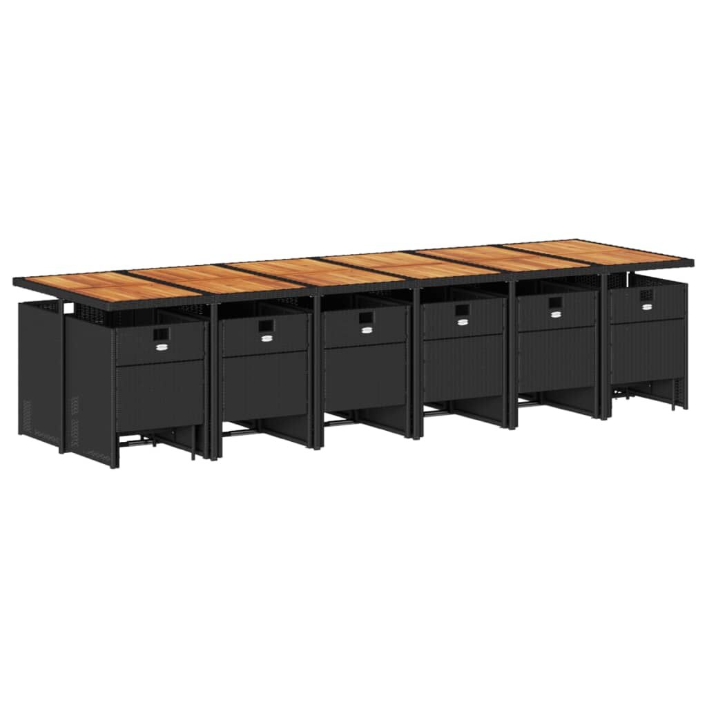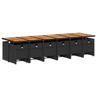 This garden dining set is a great choice for al fresco dining or just relaxing in the garden, backyard, or on the patio. Durable material: PE rattan, also known as poly rattan, is a strong, low-maintenance synthetic material that looks like natural rattan. It's lightweight, easy to clean, and commonly used for outdoor furniture due to its durability and weather-resistant properties.Compact storage: These chairs have a flap backrest that can be folded down, making it easy to store them under the table. When folded, they neatly fit under the table, forming a space-saving cube shape. Additionally, the stools can also be stored under the chairs, further maximising space efficiency. Comfortable seat experience: This outdoor furniture, complete with thickly padded cushions, offers a comfortable seating experience.Removable and washable cover: These seat cushions feature removable covers for easy washing and maintenance.Stable and easy-to-clean tabletop: This garden table has an acacia wood top that is sturdy, durable, and easy to clean with a damp cloth. Good to know: To make sure your outdoor furniture stays beautiful, we recommend protecting it with a waterproof cover.