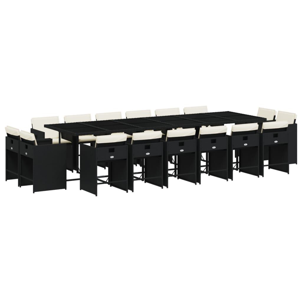 This garden dining set is a great choice for al fresco dining or just relaxing in the garden, backyard, or on the patio. Durable material: PE rattan, also known as poly rattan, is a strong, low-maintenance synthetic material that looks like natural rattan. It's lightweight, easy to clean, and commonly used for outdoor furniture due to its durability and weather-resistant properties.Compact storage: These chairs have a flap backrest that can be folded down, making it easy to store them under the table. When folded, they neatly fit under the table, forming a space-saving cube shape.Comfortable seat experience: This outdoor furniture, complete with thickly padded cushions, offers a comfortable seating experience.Removable and washable cover: These seat cushions feature removable covers for easy washing and maintenance. The chair cushion covers have a flap at the back for easy attachment to the chairs.Stable and easy-to-clean tabletop: This garden table has a tempered glass table top that is sturdy, durable, and easy to clean with a damp cloth. Good to know: To make sure your outdoor furniture stays beautiful, we recommend protecting it with a waterproof cover.