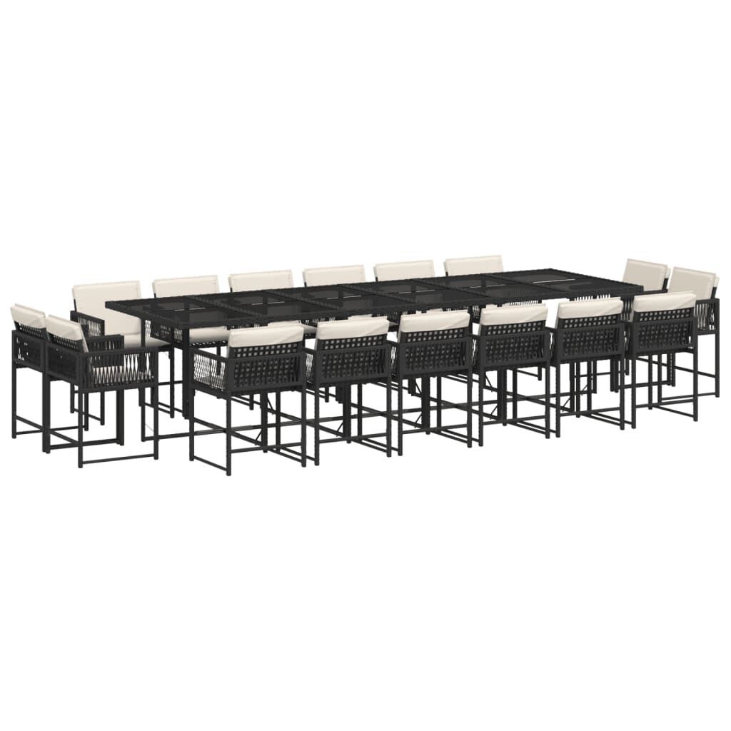 This garden dining set is a great choice for al fresco dining or just relaxing in the garden, backyard, or on the patio. Durable material: PE rattan, also known as poly rattan, is a strong, low-maintenance synthetic material that looks like natural rattan. It's lightweight, easy to clean, and commonly used for outdoor furniture due to its durability and weather-resistant properties.Compact storage: These chairs have a flap backrest that can be folded down, making it easy to store them under the table. When folded, they neatly fit under the table, forming a space-saving cube shape.Comfortable seat experience: This outdoor furniture, complete with thickly padded cushions, offers a comfortable seating experience.Removable and washable cover: These seat cushions feature removable covers for easy washing and maintenance. The cushion covers have a flap at the back for easy attachment to the backrests.Glass tabletop: The outdoor table's top is made from strong and durable tempered glass, making it easy to clean with a damp cloth and adding a touch of elegance to your outdoor space. Good to know:To make sure your outdoor furniture stays beautiful, we recommend protecting it with a waterproof cover.