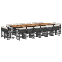This garden dining set is a great choice for al fresco dining or just relaxing in the garden, backyard, or patio. Durable material: PE rattan, also known as poly rattan, is a strong, low-maintenance synthetic material that looks like natural rattan. It's lightweight, easy to clean, and commonly used for outdoor furniture due to its durability and weather-resistant properties.Compact storage: These chairs have a flap backrest that can be folded down, making it easy to store them under the table. When folded, they neatly fit under the table, forming a space-saving cube shape.Comfortable seat experience: This outdoor furniture, complete with thickly padded cushions, offers a comfortable seating experience.Removable and washable cover: These seat cushions feature removable covers for easy washing and maintenance. The cushion covers have a flap at the back for easy attachment to the backrests.Stable and easy-to-clean tabletop: This garden table has an acacia wood top that is sturdy, durable, and easy to clean with a damp cloth. Good to know:To make sure your outdoor furniture stays beautiful, we recommend protecting it with a waterproof cover.