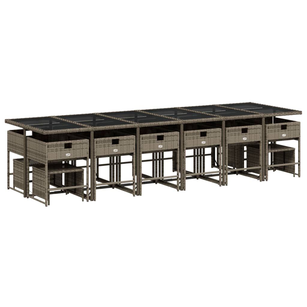 This garden dining set is a great choice for al fresco dining or just relaxing in the garden, backyard, or on the patio. Durable material: PE rattan, also known as poly rattan, is a strong, low-maintenance synthetic material that looks like natural rattan. It's lightweight, easy to clean, and commonly used for outdoor furniture due to its durability and weather-resistant properties.Compact storage: These chairs have a flap backrest that can be folded down, making it easy to store them under the table. When folded, they neatly fit under the table, forming a space-saving cube shape. Additionally, the stools can also be stored under the chairs, further maximising space efficiency.Comfortable seat experience: This outdoor furniture, complete with thickly padded cushions, offers a comfortable seating experience.Removable and washable cover: These seat cushions feature removable covers for easy washing and maintenance. The cushion covers have a flap at the back for easy attachment to the backrests.Glass tabletop: The outdoor table's top is made from strong and durable tempered glass, making it easy to clean with a damp cloth and adding a touch of elegance to your outdoor space. Good to know: To make sure your outdoor furniture stays beautiful, we recommend protecting it with a waterproof cover.