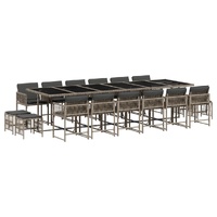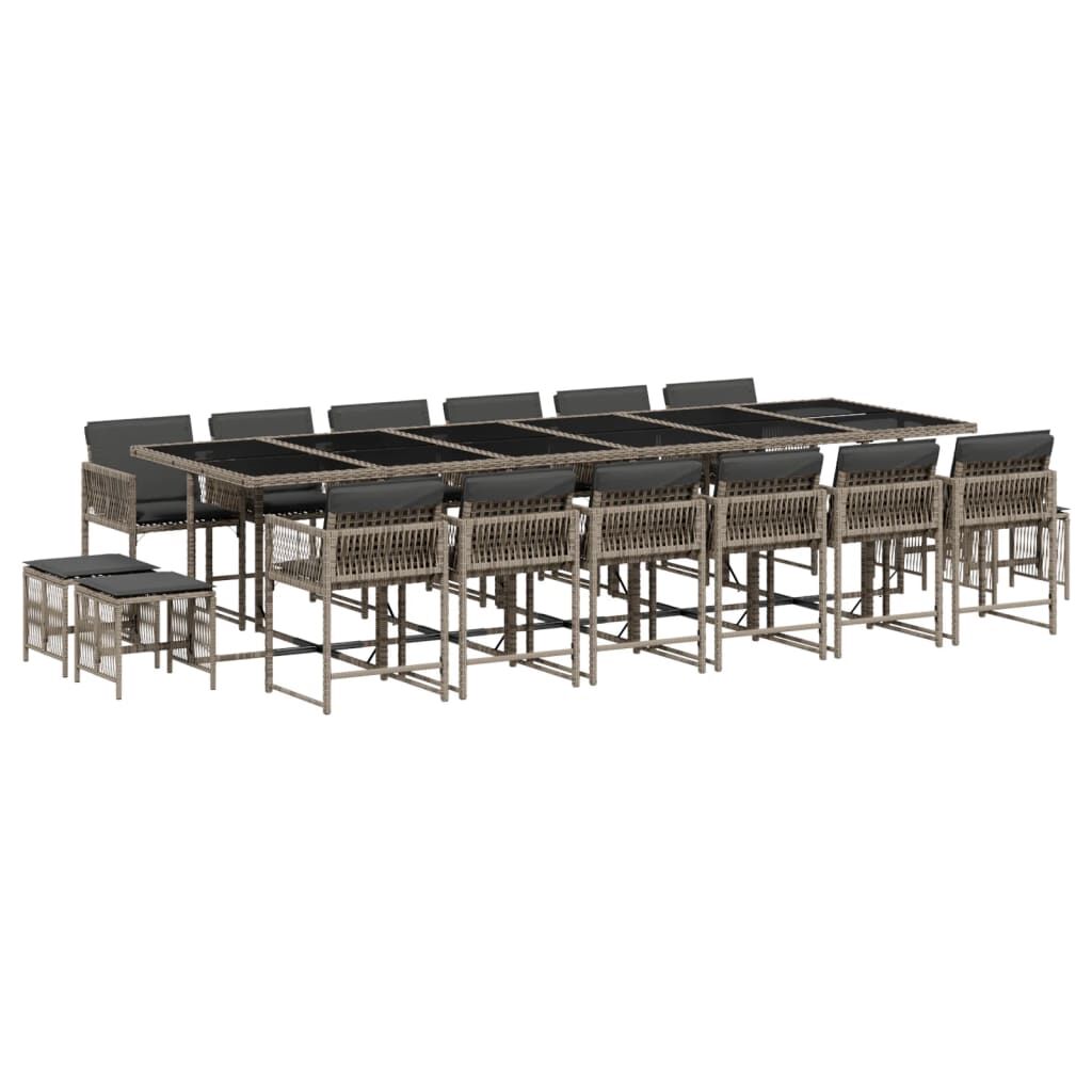 This garden dining set is a great choice for al fresco dining or just relaxing in the garden, backyard, or on the patio. Durable material: PE rattan, also known as poly rattan, is a strong, low-maintenance synthetic material that looks like natural rattan. It's lightweight, easy to clean, and commonly used for outdoor furniture due to its durability and weather-resistant properties.Compact storage: These chairs have a flap backrest that can be folded down, making it easy to store them under the table. When folded, they neatly fit under the table, forming a space-saving cube shape. Additionally, the stools can also be stored under the chairs, further maximizing space efficiency.Comfortable seat experience: This outdoor furniture, complete with thickly padded cushions, offers a comfortable seating experience.Removable and washable cover: These seat cushions feature removable covers for easy washing and maintenance. The cushion covers have a flap at the back for easy attachment to the backrests.Glass tabletop: The outdoor table's top is made from strong and durable tempered glass, making it easy to clean with a damp cloth and adding a touch of elegance to your outdoor space. Good to know:To make sure your outdoor furniture stays beautiful, we recommend protecting it with a waterproof cover.