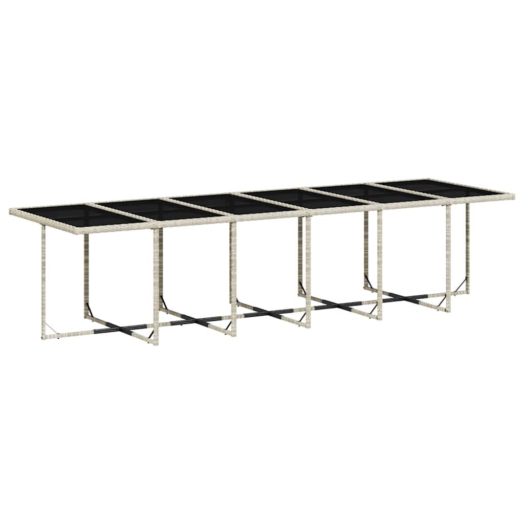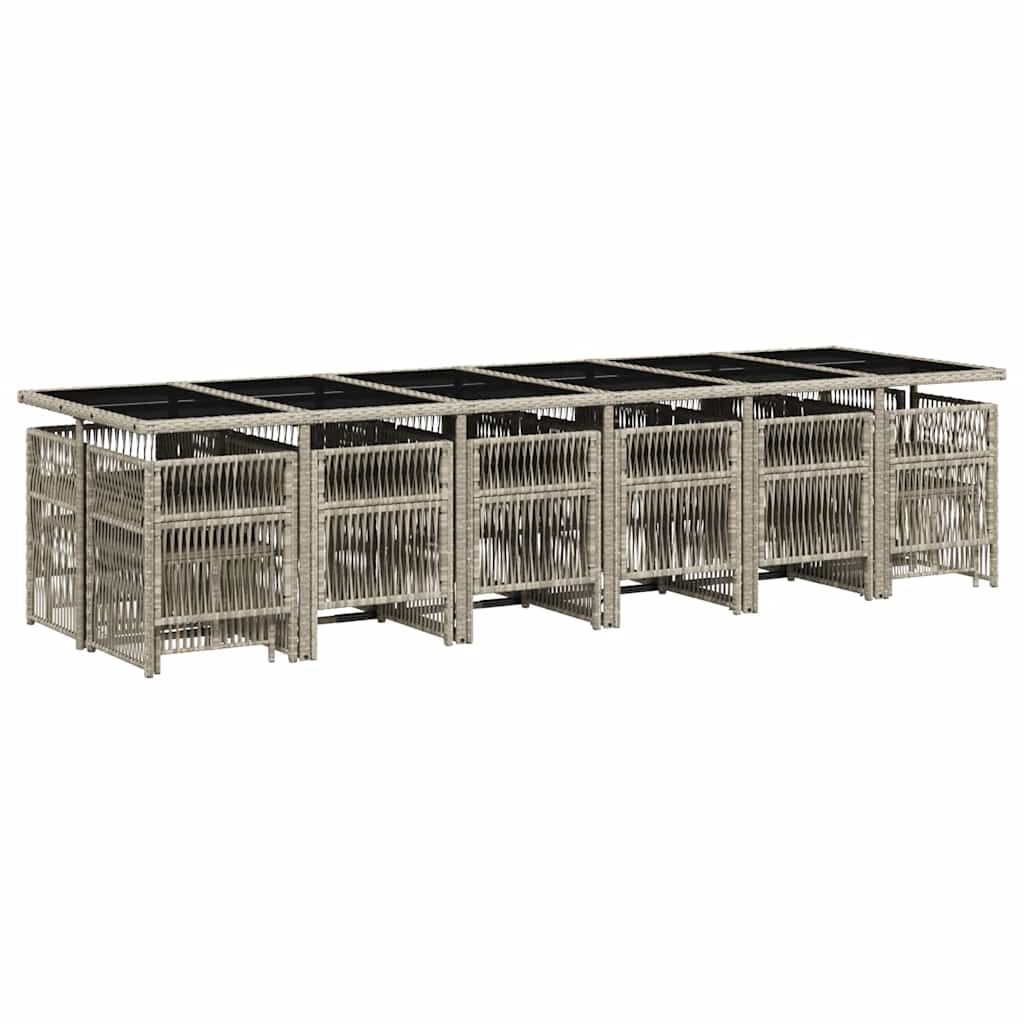 This garden dining set is a great choice for al fresco dining or just relaxing in the garden, backyard, or on the patio. Durable material: PE rattan, also known as poly rattan, is a strong, low-maintenance synthetic material that looks like natural rattan. It's lightweight, easy to clean, and commonly used for outdoor furniture due to its durability and weather-resistant properties.Compact storage: These chairs have a flap backrest that can be folded down, making it easy to store them under the table. When folded, they neatly fit under the table, forming a space-saving cube shape. Additionally, the stools can also be stored under the chairs, further maximizing space efficiency.Comfortable seat experience: This outdoor furniture, complete with thickly padded cushions, offers a comfortable seating experience.Removable and washable cover: These cushions feature removable covers for easy washing and maintenance. The cushion covers have a flap at the back for easy attachment to the backrests.Glass tabletop: The outdoor table's top is made from strong and durable tempered glass, making it easy to clean with a damp cloth and adding a touch of elegance to your outdoor space. Good to know: To make sure your outdoor furniture stays beautiful, we recommend protecting it with a waterproof cover.