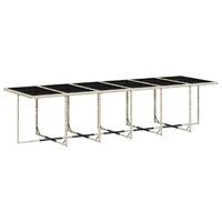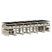 This garden dining set is a great choice for al fresco dining or just relaxing in the garden, backyard, or on the patio. Durable material: PE rattan, also known as poly rattan, is a strong, low-maintenance synthetic material that looks like natural rattan. It's lightweight, easy to clean, and commonly used for outdoor furniture due to its durability and weather-resistant properties.Compact storage: These chairs have a flap backrest that can be folded down, making it easy to store them under the table. When folded, they neatly fit under the table, forming a space-saving cube shape. Additionally, the stools can also be stored under the chairs, further maximising space efficiency.Comfortable seat experience: This outdoor furniture, complete with thickly padded cushions, offers a comfortable seating experience.Removable and washable cover: These seat cushions feature removable covers for easy washing and maintenance. The cushion covers have a flap at the back for easy attachment to the backrests.Glass tabletop: The outdoor table's top is made from strong and durable tempered glass, making it easy to clean with a damp cloth and adding a touch of elegance to your outdoor space. Good to know: To make sure your outdoor furniture stays beautiful, we recommend protecting it with a waterproof cover.