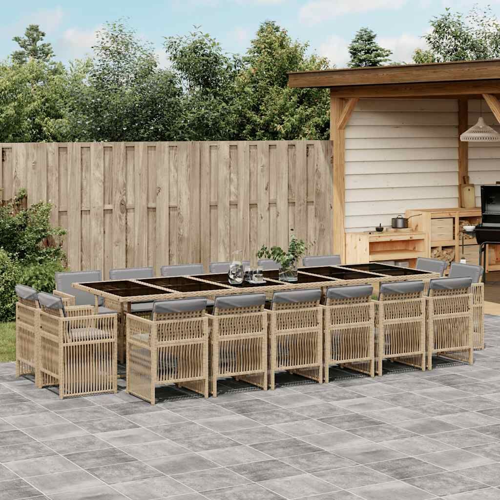 This garden dining set is a great choice for al fresco dining or just relaxing in the garden, backyard, or on the patio. Durable material: PE rattan, also known as poly rattan, is a strong, low-maintenance synthetic material that looks like natural rattan. It's lightweight, easy to clean, and commonly used for outdoor furniture due to its durability and weather-resistant properties.Compact storage: These chairs have a flap backrest that can be folded down, making it easy to store them under the table. When folded, they neatly fit under the table, forming a space-saving cube shape.Comfortable seat experience: This outdoor furniture, complete with thickly padded cushions, offers a comfortable seating experience.Removable and washable cover: These cushions feature removable covers for easy washing and maintenance. The cushion covers have a flap at the back for easy attachment to the backrests.Glass tabletop: The outdoor table's top is made from strong and durable tempered glass, making it easy to clean with a damp cloth and adding a touch of elegance to your outdoor space. Good to know: To make sure your outdoor furniture stays beautiful, we recommend protecting it with a waterproof cover.