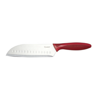 Slice and dice cheese, meat, fresh vegetables and more with the Culinare 17.5cm Santoku Knife. Ideal for everyday meal preparation, this versatile knife is a must-have for any avid home chef. It boasts a vibrant red handle and a matching blade protector, ideal for adding a pop of personality and colour to your cooking space. This knife is designed with a professional quality Japanese stainless-steel blade making it great for smooth and easy slicing. The soft touch handle has been crafted for your comfort and ease of use while offering maximum grip. Ultra-durable and easy to clean, the Culinare 17.5cm Santoku Knife is dishwasher safe for your convenience. Mix and match with additional essential knives from the Culinare range for the ultimate culinary collection.