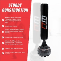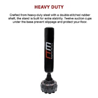 Crafted from heavy-duty steel with a double-stitched rubber shaft, the stand is built for extra stability. Twelve suction cups under the base prevent slippage and protect your floor. Fill the base with either sand or water and you're ready to train. Perfect for kickboxing, MMA, UFC, and standard boxing, this essential piece of equipment accommodates them all. Take your martial arts game to the next level when you train at home with this professional-quality punching bag and stand. Order yours today!