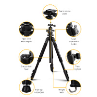 Built of a magnesium alloy, our sturdy Camera (and camcorder too) Tripod features a host of desirable shutterbug requirements such as smooth ball head action, reversible centre column for minimum height setting, centre column hook for extra stability, quick release plate and secured clip, secured wingnut, spirit level and compass and not least, a pull-out button for single angling adjustment.