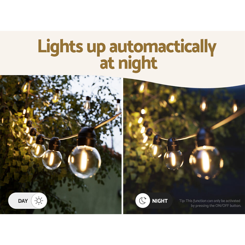 Brighten your home this festive season with a 17m Festoon String Light set from. The lights are powered by a high-conversion solar panel, or you can charge them via USB. An auto light sensor saves you power by automatically turning it on at night and off during the daylight. The string lights provide four lighting modes (steady light, slow flash, fast flash, and burst flash) to create the desired lighting ambience for any occasion. Better still, each bulb draws a very low voltage and is placed 90cm equally apart from each other throughout its length for an even distribution of illumination and brightness. Not least, every bulb has a 20,000-hour lifespan for extra durability and long-lasting use. The lights can be used both indoors and outdoors. Illuminate your home with the bright and mellow glow of the 17m Festoon String Light set.