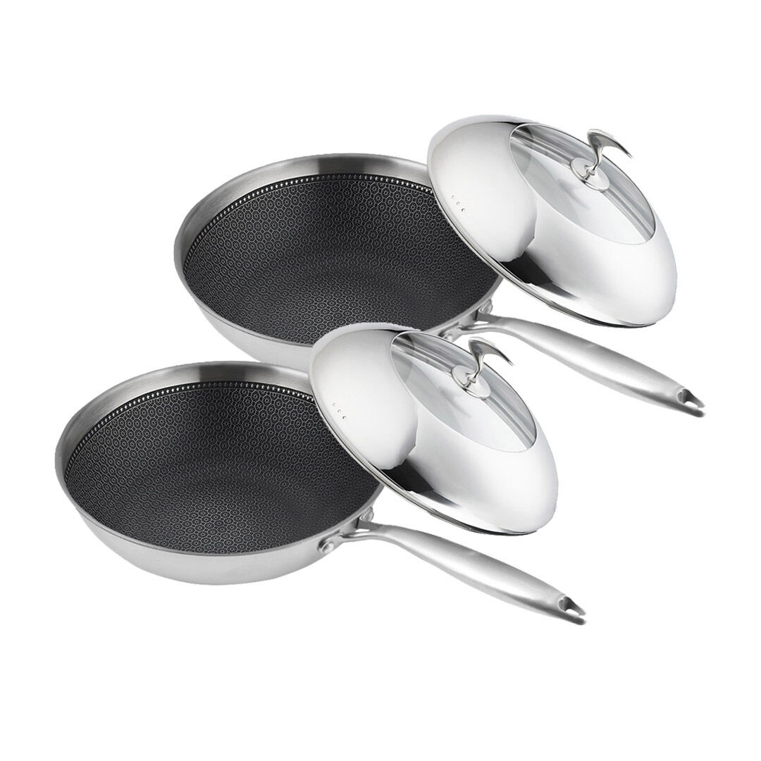 18/10 Stainless Steel Fry Pan 30cm Frying Pan Top Grade Cooking Non Stick Interior Skillet with Lid