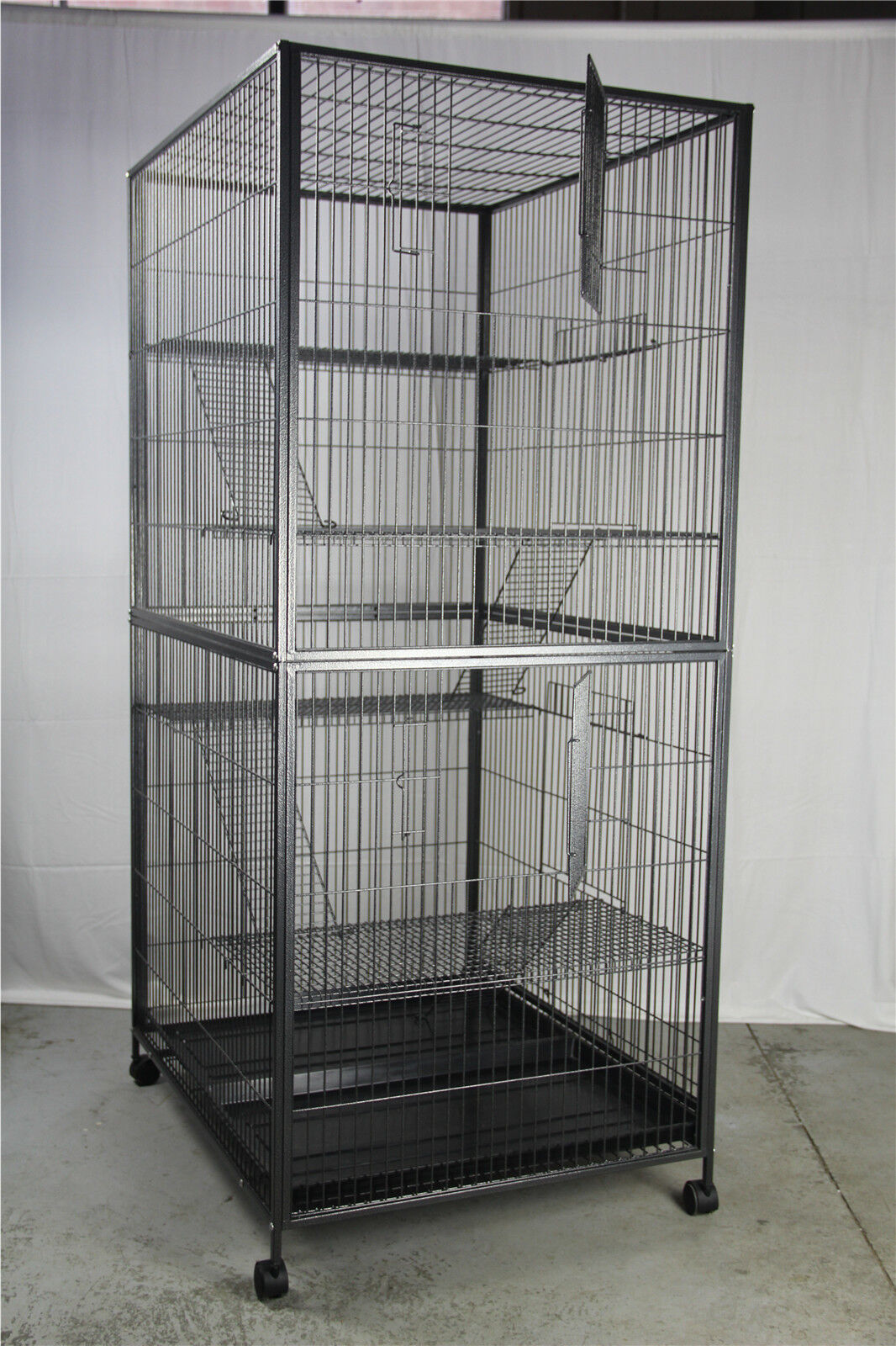 This fantastic, spaciousmulti-level animal Cage is definitely the most comfortable roost for your little one. Our cage is made of wrought ironwith vein powder coating so it is tough and durable. The dimension of this cage is 93cm x 75cm x 180 cm, which provides sufficient space and multi-area for your pets. This brand new multi-level ferret cage is in black vein, and 3removable platforms, 3removable ladders, and a funky hammock for rest and relaxation. The locks at the bottom of the cage secure animal from being escaped. In this package, it includes 4 smooth castor wheels which provide great mobility.