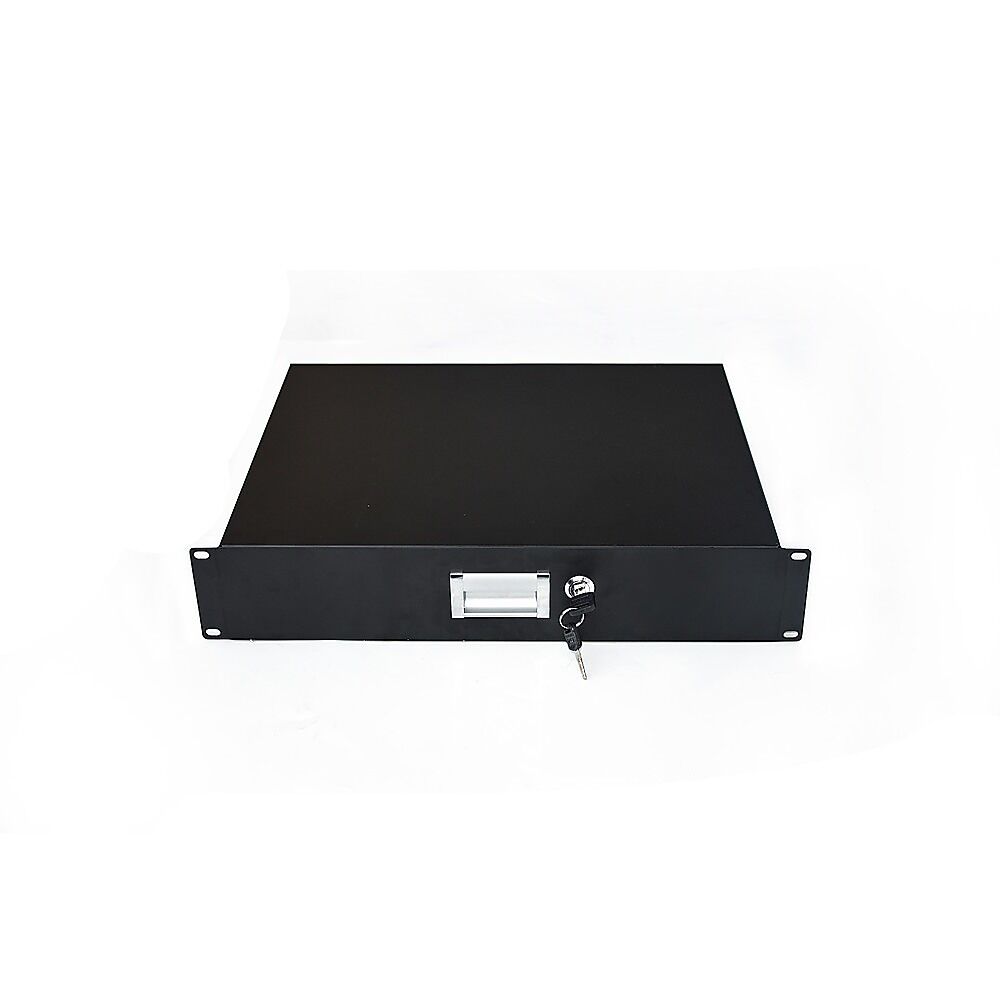 The 2U rack space is made from steel plates. While it is lightweight, it's a durable metal that creates a sturdy base for your equipment. The drawer can be locked with the key provided, which offers a secure storage option for you. You can lock the cabinet and leave your valuable contents inside, safe in the knowledge that no one but you can access them.