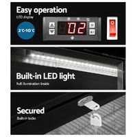 $790.53Our spacious Devanti Bar Fridge with double doors is great for keeping a variety of food and beverages chilled and cooled. Designed with adjustable temperature settings between 2°C and 10°C, the energy-efficient bar fridge lets you set your desired coolness and freshness. Other great features include fan-assisted cooling, LED temperature display, heavy-duty adjustable shelves, double-glazed tempered glass doors, built-in handles and consistent refrigeration to name a few. The bar fridge is also totally eco-friendly with its R600a freon-free refrigerant and well-made for robust use, such as the pressure-injected foam insulation and built-in LED light to ensure operation is smooth, quiet and hassle-free. The fridge also comes with built-in locks to keep the contents safe and secure, especially useful in a retail environment after you close for the night. Perfect for commercial environments such as bars, dessert shops, cafes and restaurants, the Devanti Bar Fridge is a cool investment time and again.